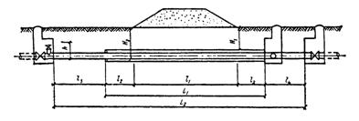 Рис. 2. Схема перехода напорным трубопроводом: h - высота стояния грунтовых вод; Н1 - заглубление до верха кожуха; H2 - глубина заложения рабочего трубопровода; l1 - длина проходки; l2 - наращивание кожуха; l3 - ремонтный участок; l4 - участок до колодца с отключающей арматурой; L1 - длина стального кожуха; L2 - длина рабочего трубопровода При наличии в проекте данных о количестве колодцев корректировка производится делением показателей таблицы «Колодцы» (включая местные материалы и конструкции) на количество колодцев на 1 км трубопровода или на один переход и умножением на количество колодцев по проекту без корректировки затрат на земляные работы. 17. Укрупненными сметными нормами учтена стоимость круглых колодцев из сборных железобетонных элементов и прямоугольных бетонных монолитных колодцев. При наличии в проекте данных об устройстве колодцев из других материалов стоимость колодцев определяется по проектным данным и действующим ЕРЕР без корректировки затрат на земляные работы. 18. Наименования материалов и конструкций в укрупненных сметных нормах приведены сокращенно. При привязке укрупненных сметных норм к местным пенам следует пользоваться полными наименованиями, приведенными в табл. 2. Таблица 2