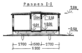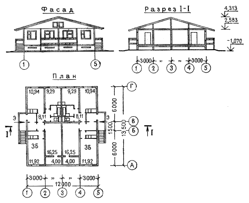 РАЙОННАЯ ЦЕНА № 2Одноэтажный двухквартирный жилой дом с квартирами типа 3Б. Здание деревянное контейнерного типа с центральным отоплением от теплосети, водопроводом и канализацией. Строительный объем здания - 421 м3 (типовой проект 420-10-1)