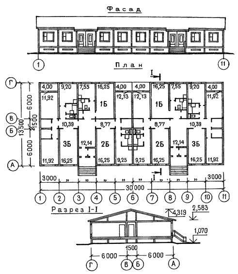 РАЙОННАЯ ЦЕНА № 10Двухэтажный трехсекционный 18-квартирный жилой дом с квартирами типа 1Б, 2Б, 3Б, центральным отоплением от теплосети, водопроводом и канализацией. Здание контейнерного типа с деревянным каркасом. Строительный объем здания - 3331 м3 (типовой проект 420-10-4)