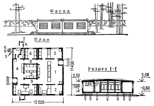 РАЙОННАЯ ЦЕНА № 23Буфет на 12 посадочных мест с центральным отоплением, водопроводом и канализацией. Здание контейнерного типа с деревянным каркасом и стальной опорной рамой. Строительный объем здания - 123,6 м3 (типовой проект 420-04-20)