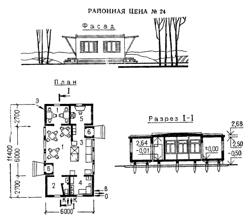 РАЙОННАЯ ЦЕНА № 25Буфет на 120 мест с водопроводом, канализацией и электроосвещением. Здание контейнерного типа со стальным объемным каркасом из отдельных плоских рам и наружной обшивкой из стали. Строительный объем здания - 434,4 м3 (типовой проект 5055-16)