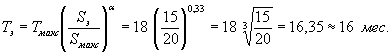 Пример 2. Определить продолжительность строительства завода стальных конструкций мощностью 15 тыс. т/год. Расчет. Исходя из имеющейся в нормах минимальной мощности объекта 20 тыс. т конструкций в год с продолжительностью строительства 18 мес, производим расчет по формуле (1):
