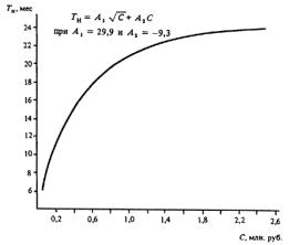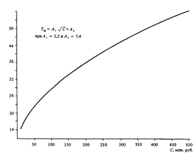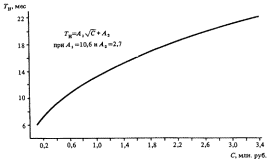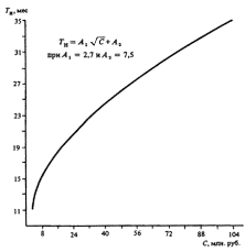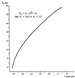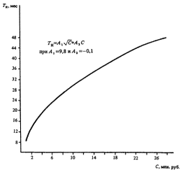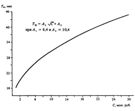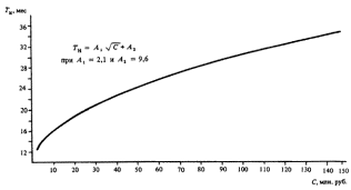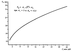 Черт. 39. Определение Тн различных объектов при С = 2,5 - 60,0 млн. руб.