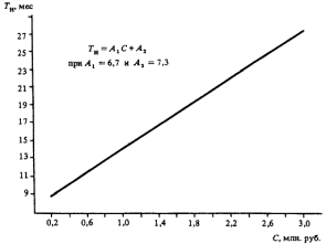 Черт. 40. Определение Тн различных объектов при С = 0,2-3,0 млн. руб.