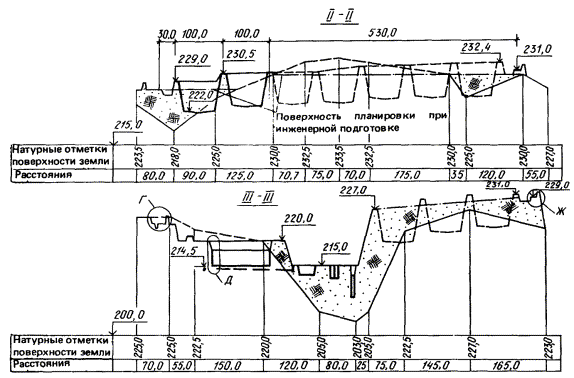 Черт. 22. Участок захоронения неутилизируемых промышленных отходов. Разрезы II-II, III-III