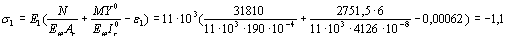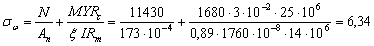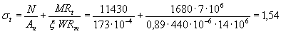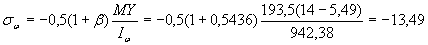 По формуле [13] определяем напряжения в крайнем ребре каркаса: в сжатой зоне