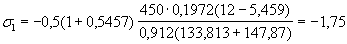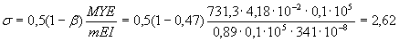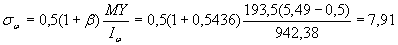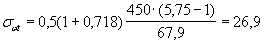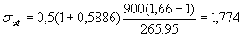 Д. Определение напряжений в среднем ребре и редуцируемой части обшивки По формуле [19] находим коэффициент b = (365,95 –100·0,832)/(265,95 + 100·0,832) = 0,5886. В обшивке напряжения определяются по формуле [12]