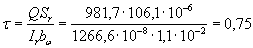 Определяем касательные напряжения в каркасе по формуле [14]: