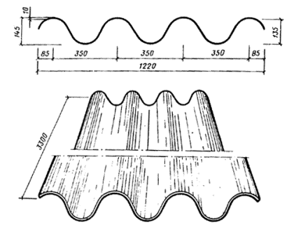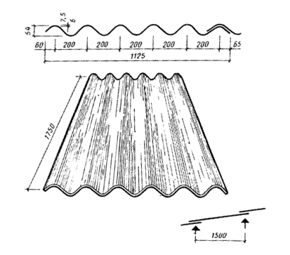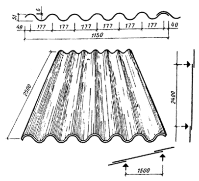 прессованного листа, кровля – из асбестоцементных волнистых листов УВ–7,5–175,