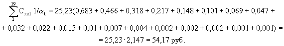Количество возобновлений лакокрасочных покрытий при сроке службы Тз.к. = 4 годам: gз.к. - 1 = 80/4 - 1 = 19. Затраты на возобновление антикоррозионной защиты с учетом 1/at по табл. 28, приведенные к началу эксплуатации: