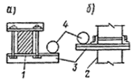 Рис. 1. Схемы защиты блочной железобетонной конструкции а - электродренажная защита; б - катодная защита; в - протекторная защита; 1 - отдельный железобетонный блок; 2 - арматурный каркас блока; 3 - регулируемая вентильная перемычка; 4 - рельсовый путь электрифицированной железной дороги и потенциальная диаграмма; 5 - дренажный кабель; 6 - устройство электрического дренажа; 7 - регулируемая перемычка; 8 - источник постоянного тока (катодная станция); 9 - анодное заземление; 10 - диод; 11 - протектор рис. 2. Общий вид перемычки между арматурой смежных секций труб 1 - стальная полоса 10´60 мм; 2 - битум марки IV; 3 - закладные части, установленные на арматурном каркасе Схему протекторной защиты (см. рис. 1) рекомендуется предусматривать для железобетонных конструкций, расположенных в знакопеременных зонах потенциалов при значениях потенциалов «рельс-земля» в пределах ±1 В. ПРИЛОЖЕНИЕ 12Усредненные исходные параметры для предварительной оценки экономической эффективности антикоррозионной защиты железобетонных конструкцийТаблица 1 Усредненные показатели стоимости конструкций, изделий, материалов и удельных капитальных вложений в организацию их производства