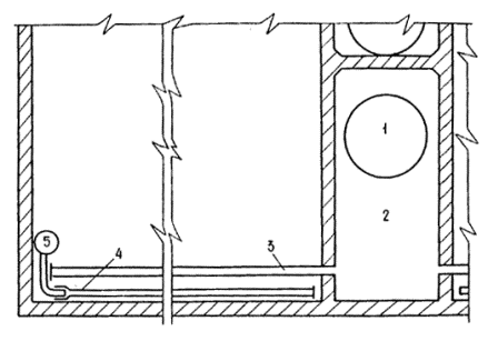 Примечания: 1. Более крупным загрузкам соответствуют бóльшие значения интенсивности подачи воды и воздуха. 2. Параметры промывки подлежат уточнению в процессе эксплуатации сооружений. УСТРОЙСТВА ДЛЯ ПОДАЧИ И РАСПРЕДЕЛЕНИЯ ВОДЫ И ВОЗДУХА7.12. Распределение воды и воздуха можно производить с помощью специальных колпачков или по перфорированным трубам. В данном Пособии приведены сведения, касающиеся использования только перфорированных труб для подачи воды и воздуха. 7.13. Схема трубчатых систем подачи воды и воздуха показана на черт. 21. Системы состоят из магистрали и коллектора (в виде канала или трубы) для подачи воды, а также из дырчатых труб для ее распределения по площади сооружения. Воздух подается и распределяется по магистрали (на черт. 21 не показана), коллектору и дырчатым трубам. Черт. 21. Трубчатые системы для подачи воды и воздуха 1 - магистраль для распределения воды; 2 - коллектор для распределения воды; 3 - дырчатые трубы для распределения воды; 4 - дырчатые трубы для распределения воздуха; 5 - коллектор для распределения воздуха 7.14. Отверстия в трубах, распределяющих воду и воздух, могут быть круглыми (когда фильтровальное сооружение имеет гравийные слои в нижней части) или щелевидными (при безгравийной загрузке). Щелеванные трубы (обычно полиэтиленовые) имеют щели шириной 0,5 мм, и во избежание засорения их надлежит применять только в сооружениях с нисходящей фильтрацией в условиях, когда исключены коррозия подводящих труб и возможность попадания в трубы продуктов коррозии и других механических примесей с промывной водой и воздухом. Приведенные соображения должны быть приняты во внимание также в отношении колпачков с узкими щелями. 7.15. Расчет и конструирование трубчатых систем для подачи и распределения воды следует производить исходя из следующих условий: диаметр распределительных (перфорированных) труб определяется исходя из скорости движения воды на входе в них при 3-м этапе промывки, равной 1,5 - 2,0 м/с. При этом расстояния между осями труб следует принимать 250 - 350 мм (меньшие расстояния - для труб меньшего диаметра); трубы следует укладывать на высоте 120 - 150 мм от дна фильтра до низа труб, точно посредине между трубами для подачи воздуха. При применении круглых отверстий суммарная их площадь должна составлять 0,18 - 0,22 % площади сооружения. При этом отверстия располагаются в один ряд по нижней образующей труб (диаметр отверстий 10 - 12 мм, расстояния между их осями 120 - 160 мм). При применении щелеванных полиэтиленовых труб их конструкцию и способ щелевания следует принимать в соответствии с разработками треста Мосводопровод и Мосводоканалниипроекта. Следует учитывать, что при выполнении монтажа перфорированных труб для распределения воды отклонения в расстояниях между осями труб в горизонтальной плоскости должны быть не более ± 10 мм, в вертикальной - не более ± 5 мм. 7.16. Для распределения воздуха следует применять полиэтиленовые трубы со стенкой толщиной, обеспечивающей их жесткость и прямолинейность. Трубы, поставляемые в бухтах, применять не рекомендуется. Отверстия или щели в трубах (см. п. 7.14) надлежит располагать в шахматном порядке по двум образующим под углом 45° к вертикали при направлении их вниз. Щели необходимо нарезать перпендикулярно оси трубы. Они должны иметь ширину 0,5 мм и длину (по внутренней поверхности тр