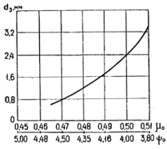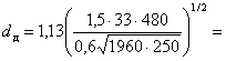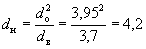 Принимаем диаметр отверстия в верхнем сечении dв = 3,7 см, тогда диаметр в нижнем сечении равен (см. п. 8.16):