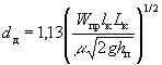 Значения рассчитанных скоростей соответствуют требованиям пп. 8.13 и 8.14. Потерю напора в патрубке hп принимаем равной 2,5 м (см. п. 8.15), тогда диаметр отверстия диафрагмы на выходе из патрубка по формуле (24) составит