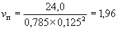 Принимаем шаг опорных стенок в осях 0,33 м, тогда число патрубков на входах в каналы будет равно 18. Расход воды через каждый патрубок равен 432/18 = 24,0 л/с, скорость воды в патрубке при диаметре 125 мм составит