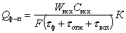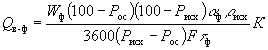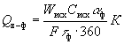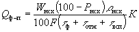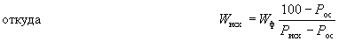 где aф - угол зоны фильтрования, град. Масса твердой фазы осадка составляет mтв = Wисх Сисх, (70) где Wисх - объем исходного осадка, м3; Cисх - концентрация исходного осадка, кг/м3. Подставляя значения из формул (68) - (70) в формулу (67), получим следующие зависимости для определения производительности: фильтр-прессов вакуум-фильтров Если концентрацию исходного осадка в формулах (71) и (72) заменить влажностью исходного осадка, указанные зависимости соответственно принимают следующий вид: где Рисх - влажность исходного осадка, %; rисх - плотность исходного осадка, кг/м3. Производительность обезвоживающих аппаратов может быть определена также по объему выделившегося фильтрата и влажности исходного и обезвоженного осадков из следующего соотношения: Wисх (100 - Рисх) = (Wисх - Wф) (100 - Рос), (75) Подставив зависимость (76) в формулы (73) и (74), получим следующие выражения: