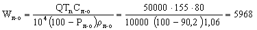 = 5903 + 5998 + 6036 + 6187 + 6339 + 6757 + 7118 + 7915 + 9604 + 46094 = 107951 ≈ ≈ 108000 м3 Поверочный расчет Wнак вместимости накопителя, выполненный путем определения годовых объемов осадка в первой и второй секциях накопителя. Поверочный расчет подтверждает сходимость полученного значения объема накопителя 107910 м3 с вычисленным по формуле (2) - 107951 м3 при условии поочередной работы секций накопителя в течение четырех лет и одновременной подачи осадка в обе секции, начиная с пятого года эксплуатации накопителя. Превышение объема осадка над вместимостью секции накопителя, которое имеет место в промежуточных расчетах после пятого года эксплуатации накопителя, не влияет на общий объем двух секций накопителя. Таким образом, расчетная вместимость накопителя по варианту 2 составляет 108 тыс. м3. Расчет следует вести по формуле (2) с определением объема накопителя для приема осадка последнего года эксплуатации по характерным периодам года. Вариант 3. Расчет вместимости накопителя, работающего без сброса осветленной воды в зимний период с предварительным сгущением осадка в сгустителях. Принимают две секции накопителя. Рассчитывают объем накопителя, предназначенного для приема объема осадка десятого года по характерным периодам года. Весенний период Wв = 3606 м3, летне-осенний период Wл-о = 5968 м3 (см. расчет по вариантам 1 и 2). Зимний период (ноябрь - март) Тn = 150 сут; Ту = 2,5 мес.; Сз = 60 мг/л;