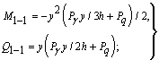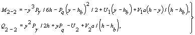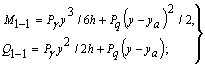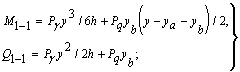 6.17. Расчетные усилия (изгибающие моменты и поперечные силы) в уголковых подпорных стенах (рис. 9) определяются по формулам: для сечения 1-1 при у £ уа + yb при y > ya + yb