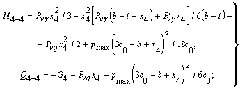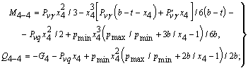 Рис. 11. Расчетная схема щелевого паза Внутренние усилия в сечении 4-4 вычисляются по формулам: