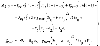 Расчет правой стенки щелевого паза производится так же, как расчет изгибаемого элемента. Внутренние усилия в сечении 5-5 вычисляются по формулам: