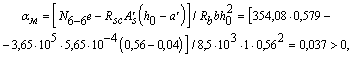 где jw1 = 1 принимаем как для бетонного сечения; jb1 = 1 - bPb = 1 - 0,01×8,5 = 0,915; b = 0,01 - для тяжелого бетона; h0 = (0,5 + 0,3)/2 - 0,04 = 0,36 м - средняя высота сечения в пределах длины наклонного сечения, принятая равной с = 2×30 = 60 см. 354,08 кН < 0,3×1×0,915×8,5×103×1×0,36 = 839,97 кН (условие выполнено); б) проверяем выполнение условия (2) в соответствии с формулой (84) СНиП 2.03.01-84* по обеспечению прочности сечения на действие поперечной силы железобетонного элемента без поперечного армирования: