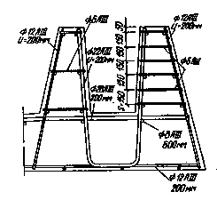 где А¢s - принятая площадь сжатой рабочей арматуры подошвы (5Æ12АIII; А¢s = 5,65 см2 = =5,65×10-4 м2). Так как aм > 0, площадь сечения растянутой арматуры определяем с учетом сжатой арматуры по формуле As = (xbh0Rb + N6-6)/0,7Rs + A¢sRsc/Rs = (0,04×1×0,56×8,5×103 + 354,08)/0,7×3,65×105 + 5,65×10-4×1= =26,96×10-3 м2 = 26,96 см2, где 0,7 - понижающий коэффициент (см. п. 6.22); x - коэффициент, принятый в зависимости от aм по табл. 20 вышеприведенного Пособия. Принимаем 5Æ28AIII с шагом 200 мм (Аs = 30,79 см2). Принцип армирования щелевого паза см. рис. 11. Расчет сечения на действие поперечной силы не производим, так как оно заведомо проходит без хомутов по бетонному сечению (толщина сечения больше, а поперечная сила по сравнению со стенками меньше).