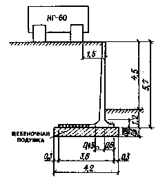 Рис. 17. Габариты приближения рамповых подпорных стен (размеры в скобках даны для железных дорог узкой колеи)