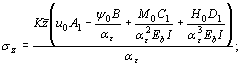 где Н0 и М0 - расчетное значение поперечной силы, кН, и изгибающего момента, кН·м, в рассматриваемом сечении сваи, принимаемые равными: Н0=Н и М0=М +Hl0, dНН, dНМ, dМН и dММ, - перемещения и угол поворота сваи в уровне поверхности грунта, вычисляемые по формулам: