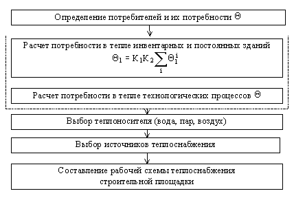 Рис. 3. Блок-схема водоснабжения строительной площадки где В свою очередь потребность в тепле i-й группы зданий равна расходу тепла на