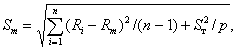 где Sт - среднеквадратическое отклонение градуировочной зависимости, МПа, определяемое по действующим государственным стандартам на неразрушающие методы; n - число проконтролированных конструкций в партии; р - число контролируемых участков в конструкции; Ri - средняя прочность бетона в отдельной конструкции, МПа, рассчитанная по всем р участкам этой конструкции; Rm - средняя прочность бетона в партии, МПа, рассчитанная по формуле (4) Рекомендаций. 8. В случае, когда в соответствии с п. 2 настоящего приложения за единичное значение принимается прочность бетона на контролируемом участке, значение Sm, МПа, вычисляют по формуле