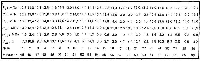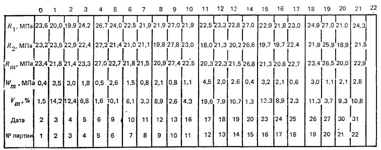 Vп = 195,7/65 = 3 %. Пример 5. Бетонный завод работает 7 дней в неделю. Пробы бетонной смеси отбирают 1 раз в сут. В табл. 7 приведены результаты контроля прочности бетона класса В15 за один месяц. Таблица 7