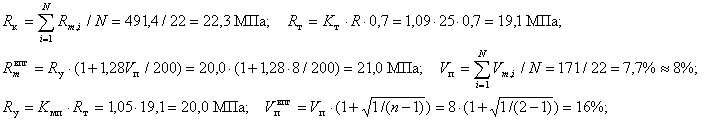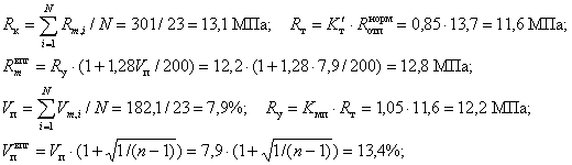 Vm = Sm×100/Rm %. (6) Средний по партии коэффициент вариации вычисляют по формуле (7) ГОСТ 18105-86 Подставляя численные значения из граф 3 и 9 табл. 5, получаем