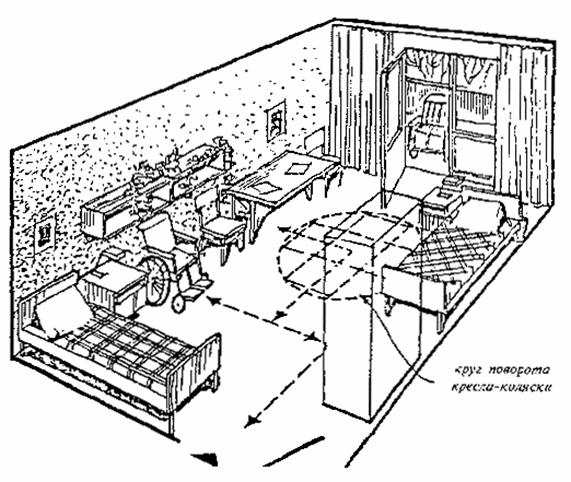 Дома-интернаты для престарелых и инвалидов (пансионаты)4.11. Существующие дома-интернаты состоят из двух жилых отделений: отделение для лиц, способных к частичному самообслуживанию и передвижению по дому и прилегающему земельному участку, и отделение для лиц, нуждающихся в уходе, постельного содержания и слабых, передвигающихся только в пределах жилой комнаты или этажа. 4.12. Набор и вместимость жилых комнат, а также их соотношение в отделениях различны: для лиц, способных к частичному самообслуживанию, не менее 80 % комнат - одноместные, не более 20 % - двухместные; для нуждающихся в уходе - по соображениям удобства эксплуатации - не менее 10 % комнат - одноместные, не более 90 % - двухместные. Для нуждающихся в уходе предусматриваются также жилые комнаты на четырех человек (не более 20 % мест в отделении). На первом этаже располагаются одноместные комнаты для инвалидов, передвигающихся на кресле-коляске. 4.13. Кроме жилых, в доме-интернате имеются следующие помещения: вестибюль, зрительный зал, библиотека-читальня, кружковая, пищеблок со столовой для способных к самообслуживанию, помещения медицинского назначения (кабинеты врачей, комнаты медсестер, процедурная, перевязочная, зал лечебной физкультуры, кабинеты массажа, механотерапии и физиотерапии и другие медицинские лаборатории), лечебно-трудовые мастерские, а также служебные и хозяйственные помещения. 4.14. Если количество престарелых, нуждающихся в постоянном уходе и полностью неспособных к самообслуживанию, достигает 70 - 90 % общего числа проживающих в домах-интернатах, возникает необходимость изменения профиля существующих и проектируемых домов-интернатов и превращения их в геронтологические больницы для нуждающихся в постоянном уходе, платные пансионаты, обеспечивающие более комфортные условия проживания и более высокий уровень медицинского обслуживания, дома сестринского ухода с различной продолжительностью пребывания, интернаты малой вместимости для тяжелобольных, нуждающихся в применении обезболивающих препаратов, наподобие хосписов за рубежом и т.д. Психоневрологические дома-интернаты4.15. Психоневрологические дома-интернаты являются специализированным жилищем для постоянного проживания людей в возрасте 16 лет и старше, страдающих хроническими психическими заболеваниями и нуждающихся в постоянном бытовом уходе, медицинском обслуживании и контроле. В психоневрологические интернаты поступают как больные из домов для умственно-отсталых детей после достижения ими восемнадцатилетнего возраста, так и больные, проживающие отдельно или в семьях, при желании и согласии родственников. Психоневрологические интернаты организуются либо раздельные для мужчин и женщин, либо смешанного типа. 4.16. Дома-интернаты для психохроников следует, как правило, проектировать вместимостью до 300 чел. высотой 2-3 этажа, но не более 5 этажей в городских поселениях. 4.17. Психоневрологические дома-интернаты должны состоять из следующих групп помещений: жилой, медицинского назначения, общественной, приемного отделения, пищеблока и административно-хозяйственных. 4.18. В составе жилой части интернатов предусматриваются три отделения (возможно, их размещение в разных зданиях): для лиц свободного содержания, наблюдательного содержания и нуждающихся в уходе. Жилые комнаты в отделениях рассчитаны 