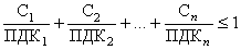 10.3. Предельно допустимые концентрации вредных веществ в воздухе рабочей зоны являются максимально разовыми. 10.4. По степени воздействия на организм человека вредные вещества следует подразделять на 4 класса: 1 - вещества чрезвычайно опасные; 2 - вещества высоко опасные; 3 - вещества умеренно опасные; 4 - вещества мало опасные. 10.5. Рабочей зоной следует считать пространство высотой до 2 м над уровнем пола или площадки, на которой находятся места постоянного или временного пребывания работающих. 10.6. При одновременном содержании в воздухе рабочей зоны нескольких вредных веществ однонаправленного действия расчет общеобменной вентиляции надлежит производить путем суммирования объемов воздуха, необходимых для разбавления каждого вещества в отдельности до его предельно допустимой концентрации с учетом загрязнения приточного воздуха. При этом допустимыми для проектирования и санитарного надзора следует считать такие концентрации (С) вредных веществ, которые отвечают формуле (2) т.е. сумма отношений фактических концентраций вредных веществ (С1, С2, ..., Сп) в воздухе помещений к их предельно допустимым концентрациям (ПДК1, ПДК2, ...., ПДКп), которые установлены для изолированного присутствия, не должна превышать 1 (единицы). 10.7. При одновременном выделении в воздух рабочей зоны помещений нескольких вредных веществ, не обладающих однонаправленным характером действия, количество воздуха при расчете общеобменной вентиляции допускается принимать по тому вредному веществу, для которого требуется подача наибольшего объема чистого воздуха. 10.8. Для вредных веществ, предельно допустимые концентрации которых не утверждены, временные предельно допустимые концентрации и условия применения этих веществ в каждом конкретном случае устанавливаются Минздравом СССР. 10.9. К вредным веществам однонаправленного действия, как правило, следует относить вредные вещества, близкие по химическому строению и характеру биологического воздействия на организм человека. Примерами сочетаний веществ однонаправленного действия являются: а) фтористый водород и соли фтористоводородной кислоты; б) сернистый и серный ангидрид; в) формальдегид и соляная кислота; г) различные хлорированные углеводороды (предельные и непредельные); д) различные бромированные углеводороды (предельные и непредельные); с) различные спирты; ж) различные кислоты; з) различные щелочи; и) различные ароматические углеводороды (толуол и ксилол, бензол и толуол); к) различные аминосоединения; л) различные нитросоединения; м) амино- и нитросоединения; н) тиофос и карбофос; о) сероводород и сероуглерод; п) окись углерода и аминосоединения; р) окись углерода и нитросоединения; с) бромистый метил и сероуглерод. 11. МЕТЕОРОЛОГИЧЕСКИЕ УСЛОВИЯ В РАБОЧЕЙ ЗОНЕ ПРОИЗВОДСТВЕННЫХ ПОМЕЩЕНИЙ11.1. Метеорологические условия - оптимальные и допустимые температуры, относительная влажность и скорость движения воздуха устанавливаются для рабочей зоны производственных помещений. Метеорологические условия в животноводческих и птицеводческих зданиях, а также в зданиях для хранения сельскохозяйственной продукции, холодильниках и т.п. (в помещениях хранения) устанавливаются в соответствии с нормами технологического проектирования, утвержденными в установленном порядке. Если параметры метеорологических условий в 