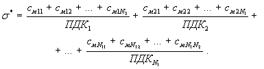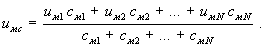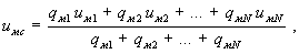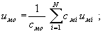 5.3. В случае использования машинного (ориентированного на применение ЭВМ) алгоритма объединения группы из N точечных источников значения см = смо, xм = xмо, uм = uмо, а также координаты размещения xи = xи о, уu = уuо для условного источника, заменяющего объединяемую группу, определяются по формулам: