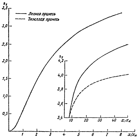 2.12. При опасной скорости ветра uм приземная концентрация вредных веществ с (мг/м3) в атмосфере по оси факела выброса на различных расстояниях х (м) от источника выброса определяется по формуле где s1 - безразмерный коэффициент, определяемый в зависимости от отношения x/xм и коэффициента F по рис. 2.4 или по формулам:
