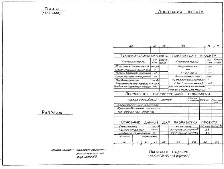 поставке стальных конструкций заводами металлоконструкций" б) оснащение отправочных элементов строповочными, сборочными, фиксирующими деталям и приспособлениями для монтажной сварки, установки конструкций в проектное положение и их временного закрепления, а также деталями для крепления монтажных подмостей и лестниц; в) при необходимости, требование общей или контрольной сборки конструкций всего сооружения или отдельных его частей в случаях, не оговоренных главой СНиП III-18-75 "Металлические конструкции. Правила производства и приемки работ"; г) перечень монтажных соединений, в которых рассверливание отверстий до проектного диаметра необходимо производить на монтажной площадке. 16.4. В ДТТ для строительной организации необходимо предусмотреть: а) очередность возведения фундаментов и подземных сооружений, обеспечивающую планомерное развитие фронта работ и возможность осуществления принятых методов монтажа; б) требования к возведению фундаментов в соответствии с принятым способом опирания и закрепления на них стальных и железобетонных колонн; в) установку закладных деталей в фундаментах и других строительных конструкций для закрепления монтажных приспособлений; г) номенклатуру и расположение временных зданий и сооружений (склады конструкций, пути для работы и передвижения кранов и транспортирования конструкций). 16.5. В ДТТ для проектной организации необходимо предусмотреть: а) конструктивные решения монтажных соединений; б) расположение монтажных стыков; в) усиление конструкций для восприятия монтажных нагрузок; г) дополнительные закладные детали в фундаментах, а также монтажные петли или отверстия для строповки железобетонных конструкций; д) нагрузки на фундаменты и подземные сооружения (подвалы, тоннели) от монтажных кранов, транспортных средств и монтажных приспособлений. 16.6. ДТТ должны быть выполнены на чертежах с пояснительной запиской, обосновывающей предложенные решения. 16.7. Разделы ДТТ, разработанные после выпуска чертежей строящегося объекта и предусматривающие изменение компоновочных или конструктивных решений строящегося объекта, должны быть согласованы с организацией-проектировщиком объекта и переданы заказчиком ППР предприятию-изготовителю и строительной организации. 16.8. Согласование ДТТ с предприятием-изготовителем конструкций, строительной и проектной организациями осуществляет организация-заказчик ППР при участии (по просьбе заказчика) представителя организации разработчика ДТТ. 17. РАСЧЕТЫ ТЕХНИКО-ЭКОНОМИЧЕСКИХ ПОКАЗАТЕЛЕЙ ППР17.1. В составе пояснительной записки к ППР должны быть приведены итоговые технико-экономические показатели проекта (по форме приложения 4). 17.2. Расчет технико-экономической эффективности вариантов, если они разработаны в составе ППР (раздел 15), должен быть выполнен в соответствии с требованиями п. 3.9. 17.3. Расчет экономической эффективности ППР выполняют по просьбе заказчика (оговоренной в техническом задании на разработку ППР). Приложение 1ТЕХНИЧЕСКОЕ ЗАДАНИЕ