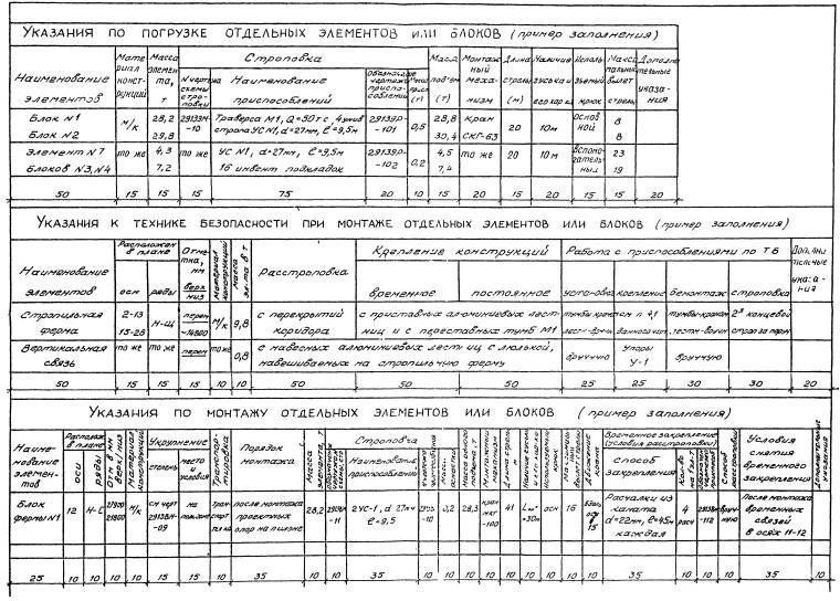 Примечания. 1. В графе «Вид работ» следует указывать, например: монтаж, погрузка, разгрузка и т.д. 2. В графе «Масса в сборе» следует указывать массу грузозахватных приспособлений в сборе с соответствующими стропами. 3. В графе «Общая масса подъема» следует указывать массу поднимаемого элемента (блока) конструкций вместе с массой соответствующих грузозахватных приспособлений в сборе.