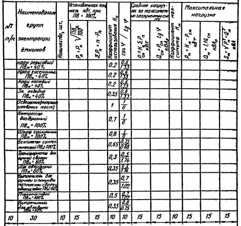 Примечания. 1. Характеристики электроприемников указывают по каталожным данным. 2. Значения Км принимают по таблице. Рн – нормативная мощность электроприемников (суммарная мощность установленных электродвигателей).