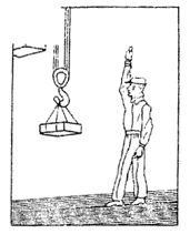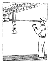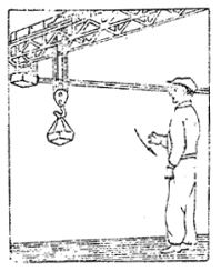 Рис. 3. Опустить груз или крюк: прерывистое движение руки вниз перед грудью ладонью вниз, рука согнута в локте