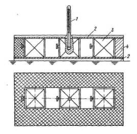 1 - термометр; 2 - шиты опалубки с термоактивными элементами; 3 - образцы в формах; 4 – теплоизоляция