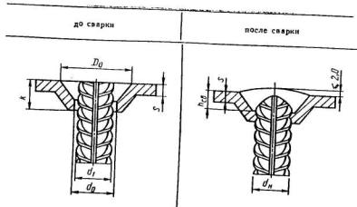 сварки арматуры 4.3.7. Оптимальные величины геометрических параметров режима контактной стыковой сварки стержней одинаковых или мало различающихся диаметров (d'н/dн = 0,85) приведены в табл.4.7.