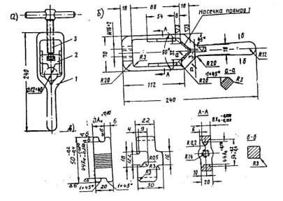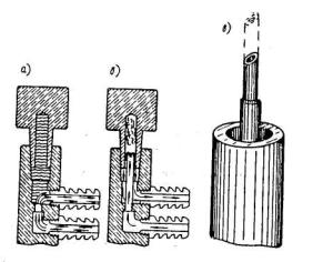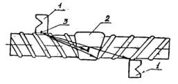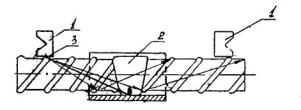 Примечания к табл.4.5 и 4.6: 1. Арматура класса A-IV, кроме стали марки 80С. 2. Арматура класса Ат-V только с использованием локальной термической обработки. 4.3.3. Заготовку стержней под стыковую сварку следует осуществлять рубкой на механических ножницах. Не допускается применять стержни с концами, отогнутыми при рубке. Допускается применение газовой резки. При этом стержни, подлежащие сварке непрерывным оплавлением, должны быть отрезаны под углом, регламентированным табл.4.5 и 4.6. При установке в машину торцы стержней не должны быть параллельны между собой. Торцы стержней следует очищать от окисной пленки и иных загрязнений, препятствующих образованию электрического контакта. Стержни в местах контакта с гнездами электродов должны быть зачищены до металлического блеска. 4.3.4. Электроды контактных стыковых машин следует изготавливать из специальных медных сплавов, марки и технические данные которых приведены в п.п.3.1.1-3.1.3. Допускается изготовление электродов из меди марок M-1...M-3, при этом весьма целесообразно на контактную поверхность электродов произвести дуговую наплавку электродами БР-3 (см. раздел 3). 4.3.5. Электроды для стыковой сварки должны иметь продольные канавки-гнезда призматического или трапецеидального сечения (рис.4.10).