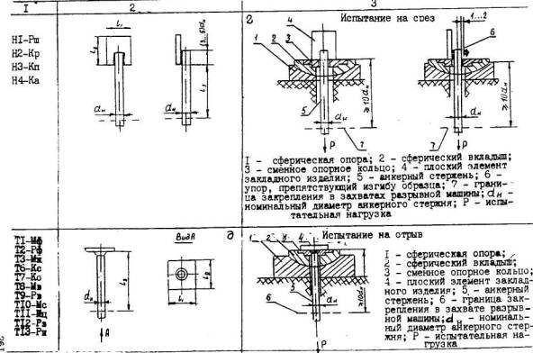 * При h2 £ 12 мм допускается выполнять соединения без подварочного шва. 5.3.2. Сборку элементов закладных изделий следует осуществлять в кондукторах или на прихватках. Прихватки следует располагать: для соединений со стержнями диаметром до 16 мм - с одной стороны, а при стержнях больших диаметров - с двух противоположных сторон так, чтобы при сварке закладных изделий они были полностью переплавлены. Прихватки следует выполнять теми же электродами, что и сварные швы. 5.3.3. Соединения со стержнями диаметром до 14 мм, как правило, следует выполнять за один проход. При многослойной сварке каждый слой перед наложением последующего должен быть очищен от шлака и брызг металла. Переход от наплавленного металла к пластине и стержню должен быть плавным. Подрезы на стержнях не допускаются. Кратеры должны быть заварены. Сварку следует выполнять электродами диаметром: 4 мм при dн = 8-16 мм; 5 мм при dн = 14-32 мм; 6 мм при dн = 22-40 мм. Сварочный ток следует назначать по паспортным данный электродов. 5.4. Ванная и многослойными швами одноэлектродная сварка тавровых соединений5.4.1. Приварку втавр рабочей арматуры непосредственно к опорным частям колонн (лист, плита) или изготовление крупногабаритных закладных деталей можно осуществлять, применяя конструкции и размеры соединение, приведенных на рис.5.12 и в табл.5.7, используя при этом инвентарные формующие устройства.