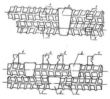 Рис.4.1. Конструкции крестообразных соединений арматуры типов K1-Кт (вверху) и К2-Кт (внизу)
