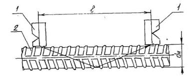 2.1.7. Металлургическими заводами осуществляется переход на выпуск арматурной стали с дополнительной маркировкой ее класса прочности и завода-изготовителя, наносимой на стержнях при их прокатке, в виде маркировочных коротких поперечных ребер или точек на поперечных ребрах. Маркировочные короткие ребра высотой 0,5 мм, не выходящие за пределы габаритного размера по окружности наружного диаметра, располагают на поверхностях, примыкающих к продольным ребрам. Маркировочные точки высотой, равной высоте поперечного выступа стержня, представляют собой конусообразные утолщения на поперечных ребрах. Маркировка имеет следующую структуру - за знаком начала маркировки, представляющим два маркировочных коротких поперечных ребра либо две маркировочные точки на соседних поперечных выступах периодического профиля, обозначается шифр завода-изготовителя (числом поперечных выступов периодического профиля между указанными маркировочными знаками) и далее класс прочности арматурной стали (соответствующим числом поперечных выступов профиля между маркировочными знаками). Структура прокатной маркировки стержней показана на рис.2.2. Прокатная маркировка наносится на стержни через 0,7-1,4 м.