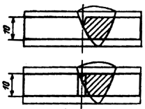 при автоматической и полуавтоматической сварке с любым типом защиты, кроме флюса, при толщине металла до 10 мм - не менее 15 мм в начале и не менее 30 мм в конце шва, а при толщине металла более 10 мм - не менее 30 мм в начале и не менее 50 мм в конце шва;