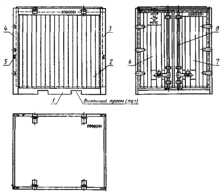 Срок действия с 01.01.77 до 01.01.96 Настоящий стандарт распространяется на универсальные унифицированные металлические закрытые контейнеры типоразмеров УУК-5, УУКЛ-5, УУК-5 (6) и УУКП-5 (6) по ГОСТ 18477-79, предназначенные для перевозки штучных грузов в таре, без тары и в облегченной упаковке железнодорожным, автомобильным и водным транспортом. (Измененная редакция, Изм. № 2, 3, 4). 1. ПАРАМЕТРЫ И РАЗМЕРЫ1.1. Основные параметры и размеры контейнера - по ГОСТ 18477-79. Масса брутто - контейнеров УУК-5 (6) и УУКП-5 (6) в смешанном сообщении - 5 т. Собственная масса контейнера высотой 2400 мм должна быть не более 950 кг, а высотой 2591 мм - не более 970 кг. 1.2. Размеры и расположение рымных узлов - по ГОСТ 18579-79. 1.1, 1.2. (Измененная редакция, Изм. № 2, 3).