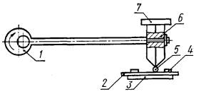 Дата введения 01.01.71 Настоящий стандарт распространяется на обмоточные провода круглого и прямоугольного сечений со всеми видами изоляции и устанавливает метод испытания механической прочности изоляции на истирание. Применение метода предусматривается в стандартах и технических условиях, устанавливающих технические требования на обмоточные провода. (Измененная редакция, Изм. № 5). 1. ОТБОР ОБРАЗЦОВ1.1. Испытанию должны быть подвергнуты провода, не имеющие механических повреждений и хранившиеся в условиях, указанных в стандартах или технических условиях на обмоточные провода. 1.2. Образцы провода перед испытанием должны быть смотаны с катушки без растяжения и изгибов. 1.3. От испытуемой катушки или барабана с проводом должно быть отобрано два образца, каждый длиной не менее 200 мм, если в стандарте или технических условиях на провода не предусмотрено большее количество образцов. Образцы должны быть выпрямлены без удлинения. С одного конца каждого образца на длине 10 - 15 мм должна быть удалена изоляция. (Измененная редакция, Изм. № 5). 2. АППАРАТУРА2.1. Для проведения испытания должен применяться скребковый прибор, состоящий из электродвигателя, его привода с редуктором и эксцентриком, скребка со стальной иглой на конце, набора грузов для создания соответствующей нагрузки на иглу, приспособлений для закрепления и поворота испытуемого образца в соответствующее положение, реле автоматического отключения двигателя при возникновении контакта между иглой и проволокой и счетчика числа двойных (возвратно-поступательных) ходов иглы. Прибор должен соответствовать технической документации, утвержденной в установленном порядке. Схема рабочей части скребкового прибора указана на чертеже.