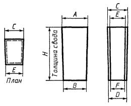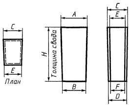 Рисунок 8 - Опорный кирпич Таблица 9 - Размеры и назначение опорного кирпича В миллиметрах